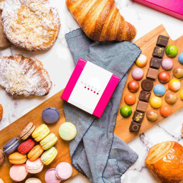 For individual treats, try the Lemon Meringue Tart with a perfect balance of lemon cream and sweet meringue, or the Pur Noir cake, a chocolate lover's dream with 70% grand cru chocolate. The Viennoiserie selection offers buttery croissants and Pain Au Chocolats that are simply irresistible.